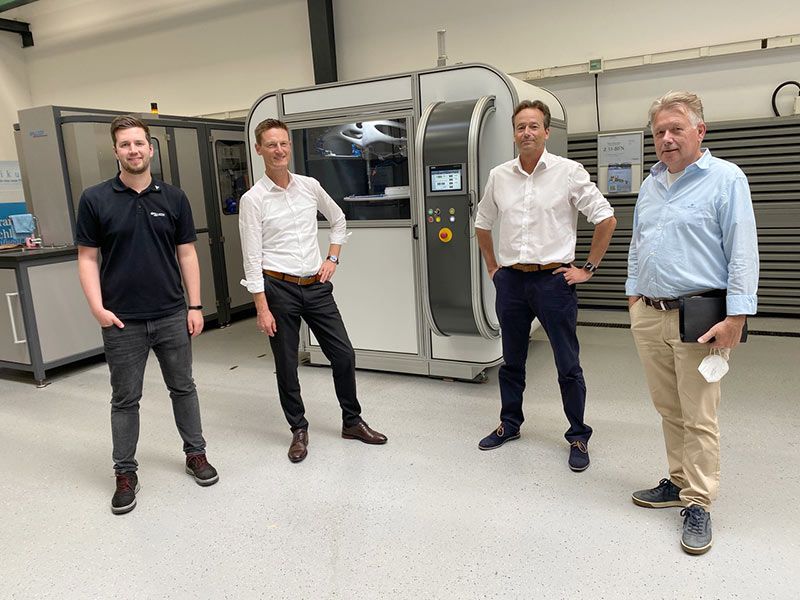Bei einem Unternehmensbesuch durch Geschäftsstelleinleiter Jürgen Paschold vom REFA Regionalverband Osnabrück-Münsterland-Niederrhein stellten Firmenchef Alwin Keiten-Schmitz, IT-Leiter Mathieu Geuting und der Leiter der Fertigung, Tim Albrecht, wichtige Resultate des Wissenschafts-Projekts „FlexDeMo“ bei Spaleck Oberflächentechnik in Bocholt vor.