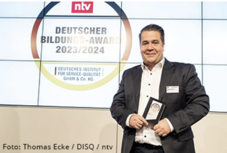 Der "Deutsche Bildungs-Award" wurde am 02. November 2023 vom Deutschen Institut für Service-Qualität und dem Nachrichtensender ntv in der Berliner Bertelsmann-Repräsentanz verliehen. In der Kategorie Prozess- und Projektmanagement kam REFA unter die Top 3, die Auszeichnung nahm Herr Torsten Klanitz, REFA-Produktmanager, im Namen der REFA Group entgegen.