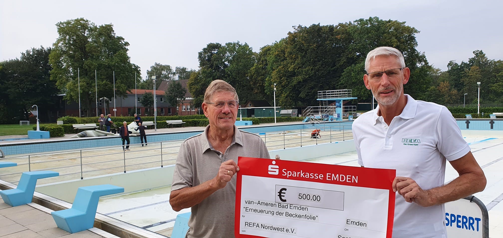 Der REFA-Regionalverband Weser-Ems, eine Untergliederung des REFA Nordwest ev., unterstützt das Bürgerbad Van-Ameren Bad mit einer Spende zur Erneuerung der Beckenfolie und möchte damit auch den vielen ehrenamtlichen Helfern und Helferinnen seinen Dank aussprechen.