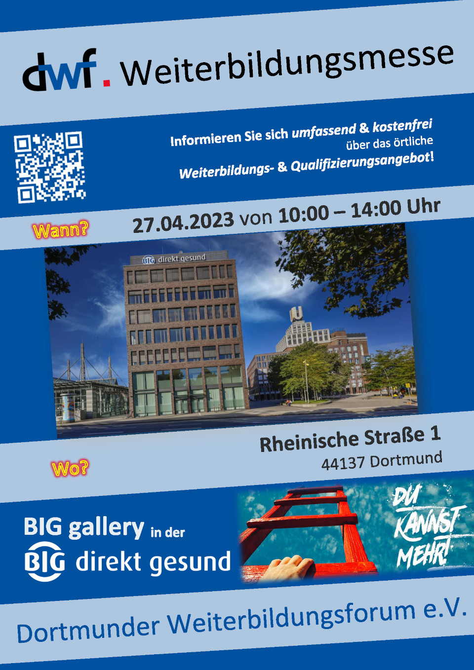 Das Dortmunder Weiterbildungsforum e. V. bietet Ihnen die Möglichkeit sich umfassend & kostenfrei über das örtliche Weiterbildungs- & Qualifizierungsangebot zu informieren. Wir laden Sie ein, zu interessanten Gesprächen und beraten Sie!
