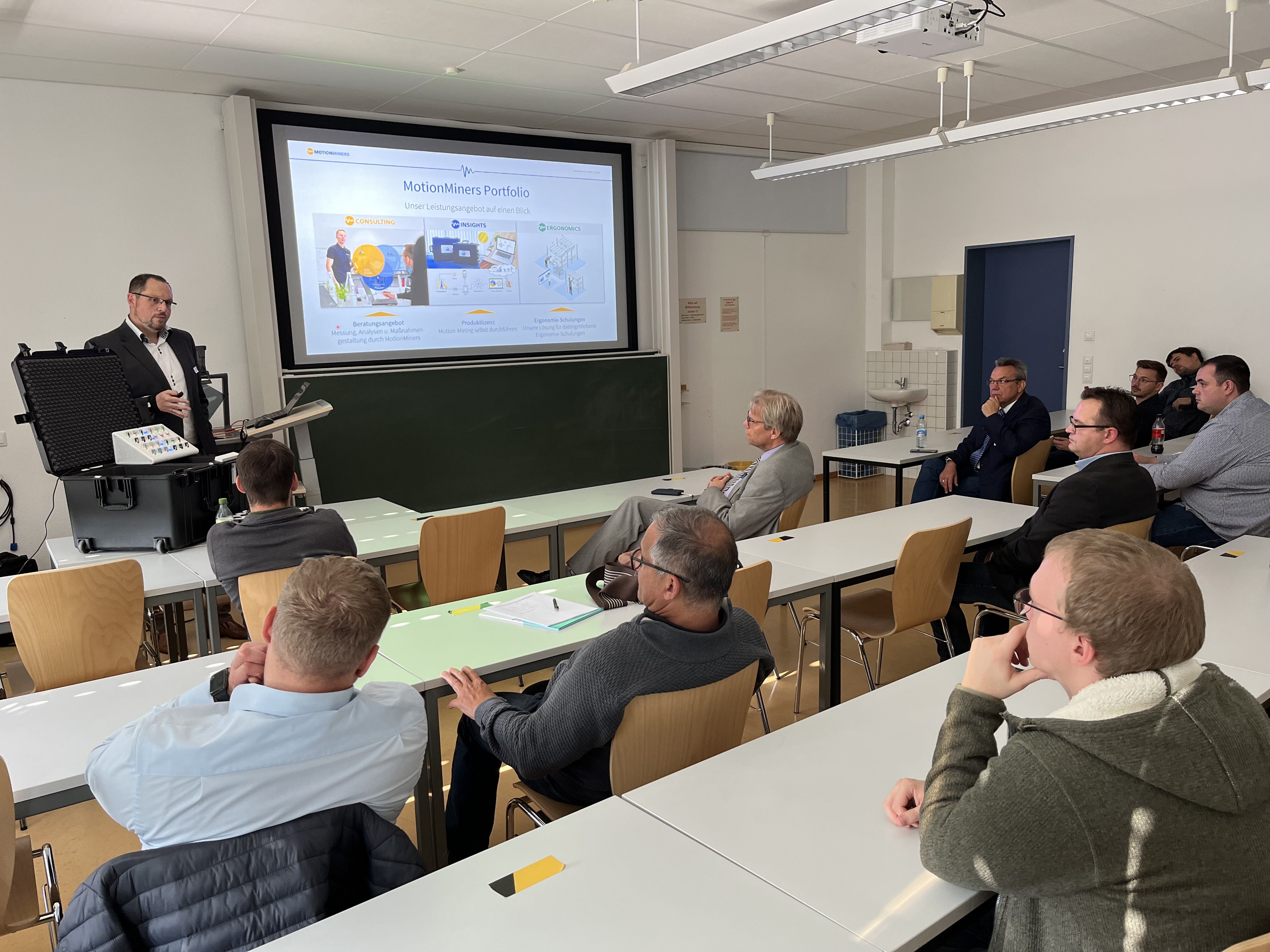 Nach dem Mittag stand u.a. ein Campus Ausstellungsparcour zu Themen wie - Virtual Reality - Anwendungen und Nutzen in der Fabrik, ein Beispiel zur Datengetriebenen Prozessanalysen mit „Motion-Mining“ und der Bionik Lehrpfad auf dem Programm.